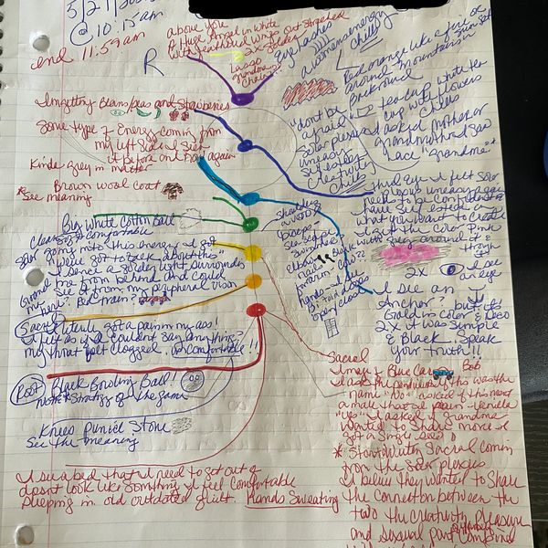 This can take me several hours to do. I start each session by noting your name, the date, and time, along with your Chakra body diagram. The Chakras serve as markers that guide me as I scan your body, beginning with the front (right side) and then moving to the back (left side). If any area requires additional attention, it will become apparent during the second scan. While this process can take some time is why it's done prior to our scheduled session. I find it to be incredibly valuable and I record the time at the end of the session for reference.